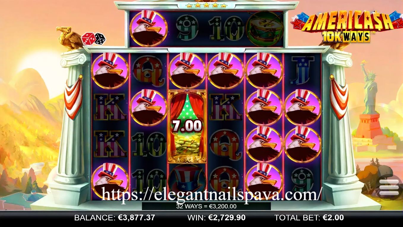 Setiap putaran di Americash 10K Ways memberikan sensasi patriotik sekaligus peluang kemenangan spektakuler.